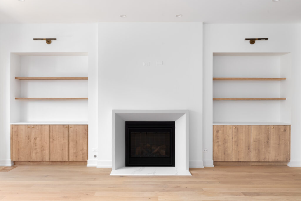 Add beautiful shelving, mantels, or cabinetry to create functional, stylish focal points.
